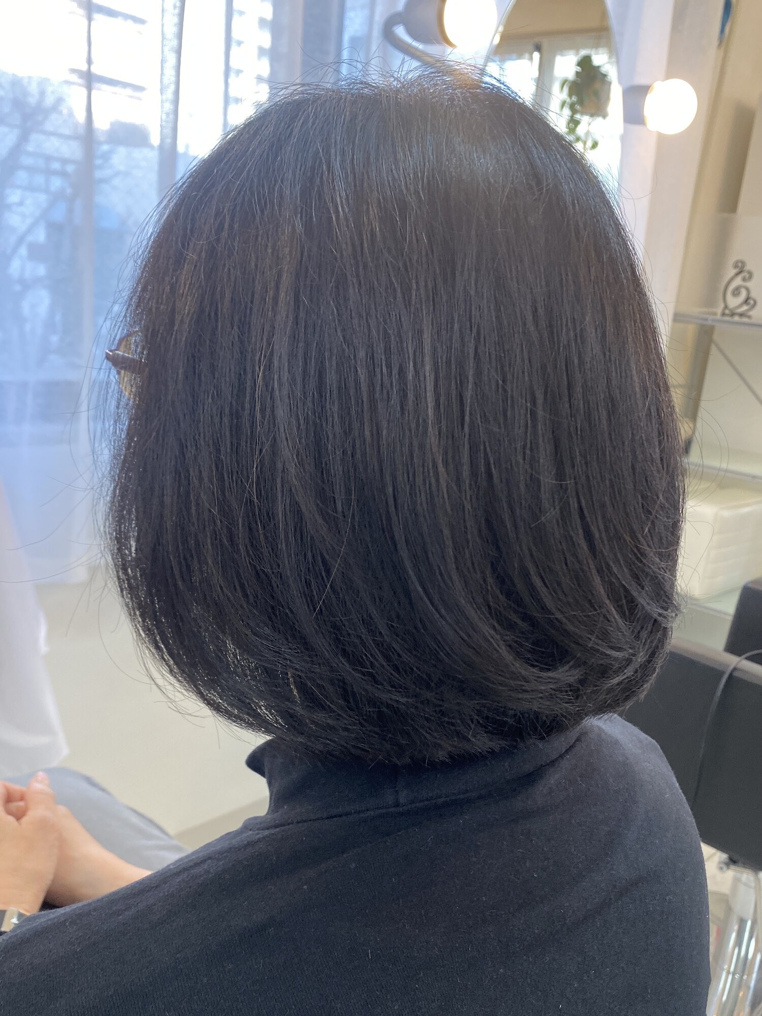 - ボブに、レイヤーをいれたスタイル。毛先には重さを残して、表面にレイヤーを入れてるので軽すぎないけど、動きのある大人ボブ