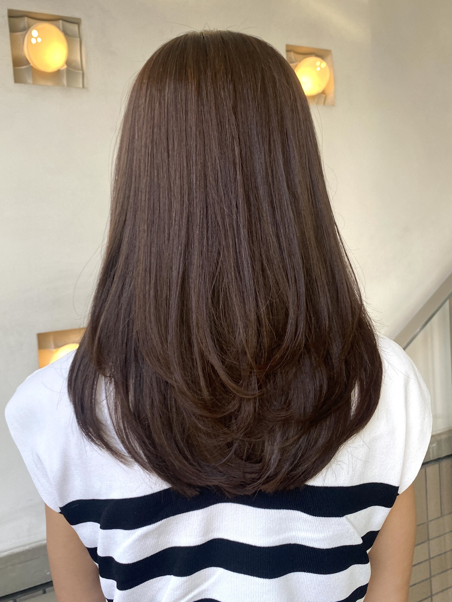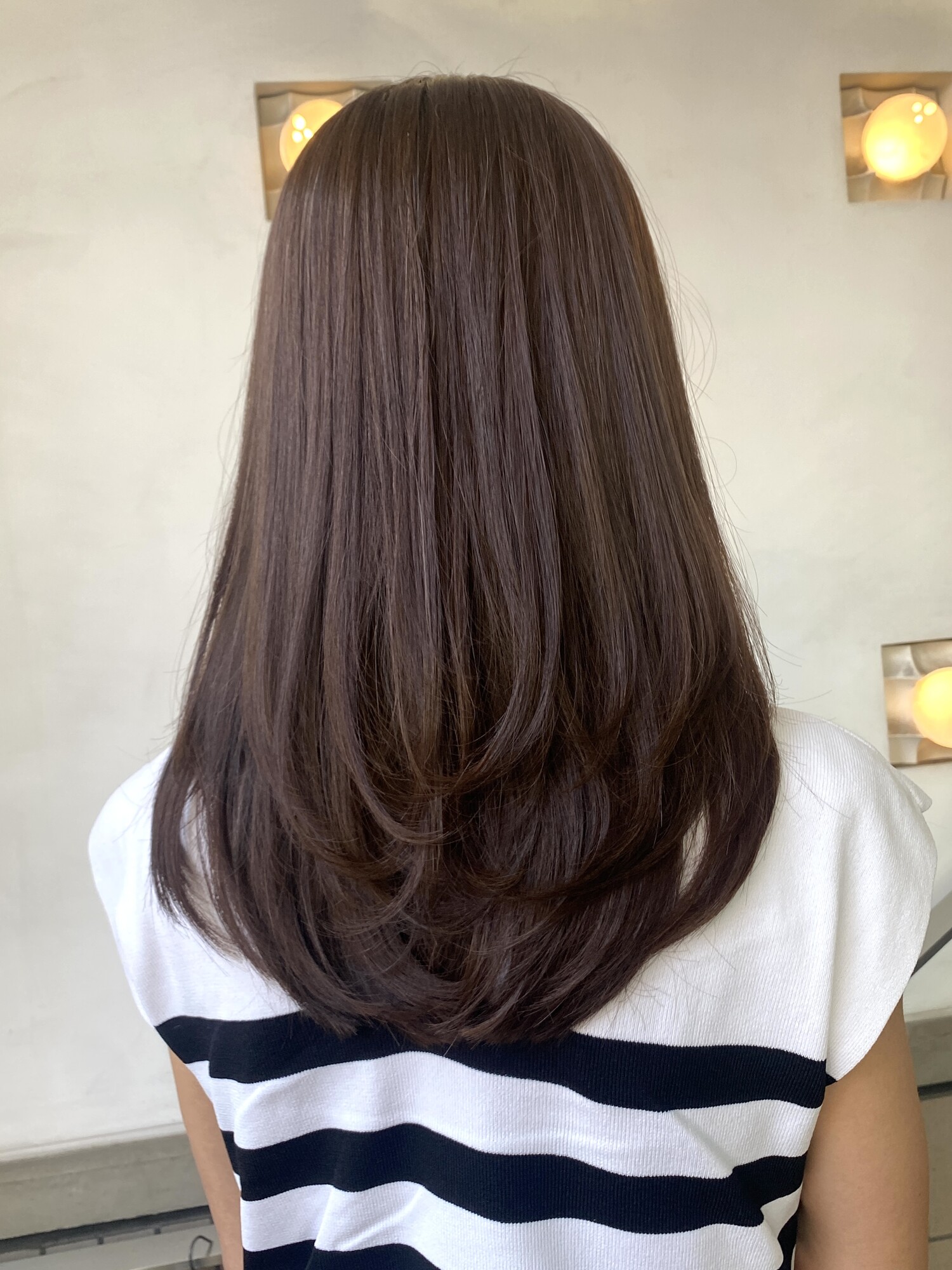- レイヤーを入れた、動きのあるロングレイヤースタイルカラーは、アッシュにヴァイオレットをプラスして、透明感と艶をいれた色になっています
