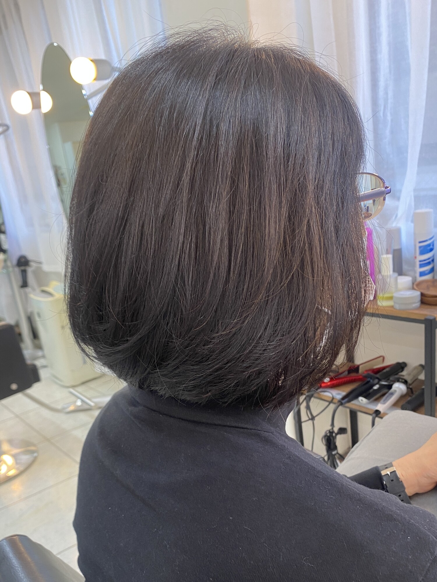 - ボブに、レイヤーをいれたスタイル。毛先には重さを残して、表面にレイヤーを入れてるので軽すぎないけど、動きのある大人ボブ
