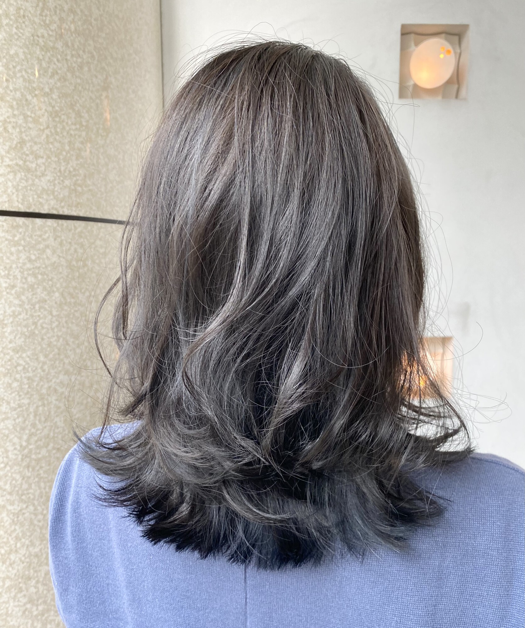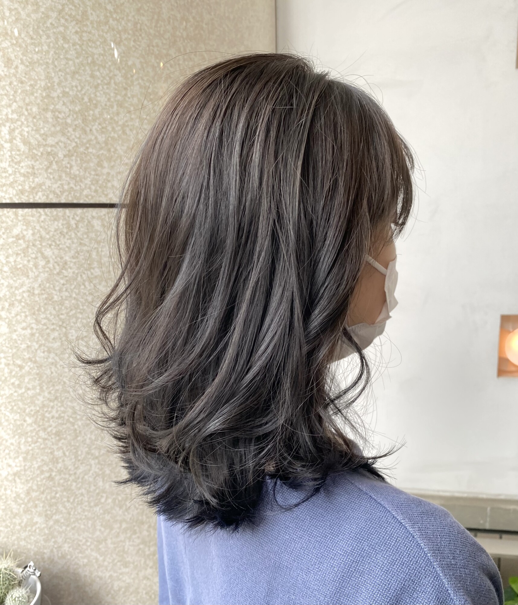 - 艶が出やすいように配合したブルージュカラーとくびれの位置も計算したミディアムレイヤーで外ハネくびれミディアムを楽しみましょう!!